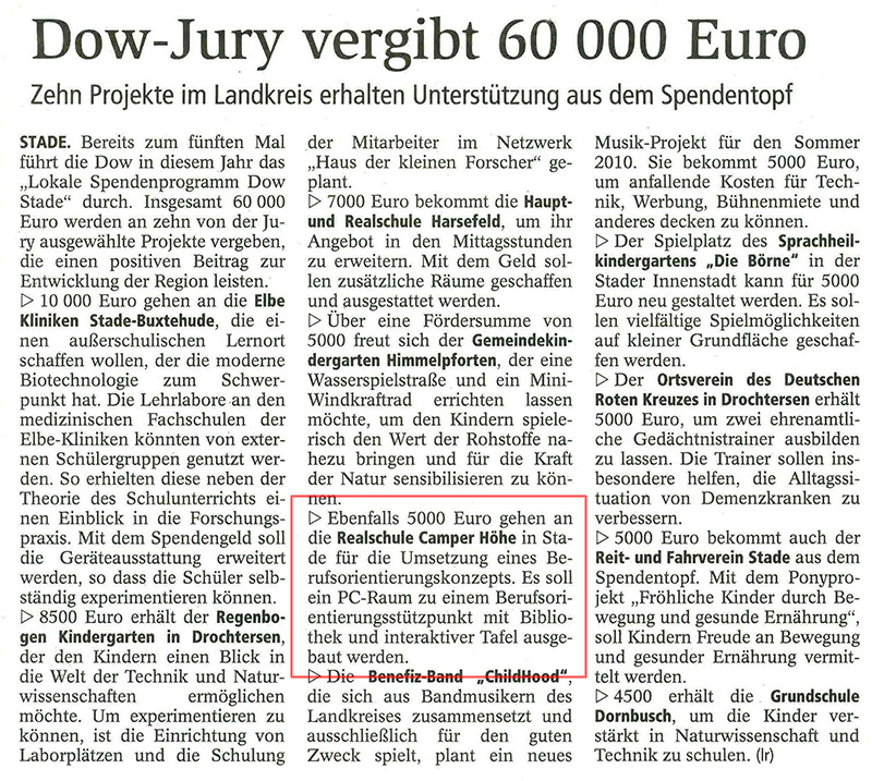 Presseartikel: DOW Spende an die Realschule Camper Höhe