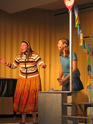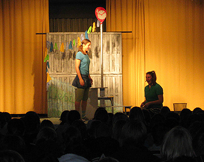 Die beiden Schauspielerinnen übernahmen im Stück viele Rollen und überzeugten mit Spielfreude, Witz und einem für alle Schüler verständlichen Englisch. |