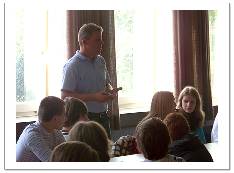 Zunächst stellte er das Unternehmen vor und berichtete anschließend über die Ausbildungsmöglichkeiten und erläuterte den Schülern, worauf bei Bewerbungen, Einstellungstests und Vorstellungsgesprächen zu achten ist.