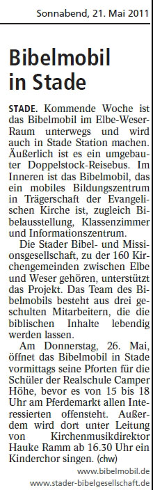 Am 26.05.2011 war das Bibelmobil bei uns auf der Camper Höhe