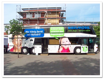 zu Gast. Das Bibelmobil ist ein umgebauter Reisebus.