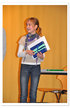 Selbstverständlich wurde allen sechs Teilnehmern als Dankeschön ein kleiner Preis in Form eines Buches überreicht. Nun sehen wir alle gespannt der nächsten Ausscheidung entgegen, in der Jenny die Realschule Camper Höhe vertreten wird.