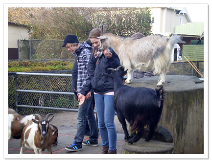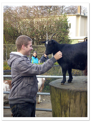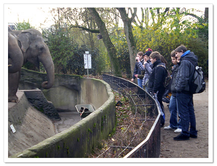Frau Smiglewicz kaufte die Eintrittskarten, während wir uns für ein Gruppenfoto vor dem Haupteingang in Stellung brachten. Nachdem wir sicherheitshalber gleich zweimal abgelichtet wurden, konnten wir uns auf die verschlungenen Wege des seit 1896 bestehenden Tierparks machen.