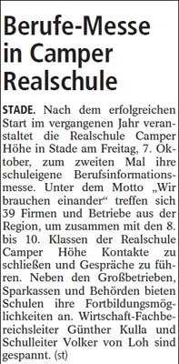 Oktober fand in der Realschule Camper Höhe die zweite Jobmesse statt.