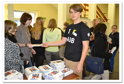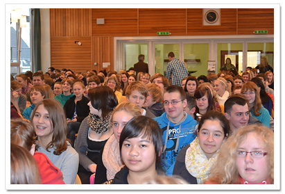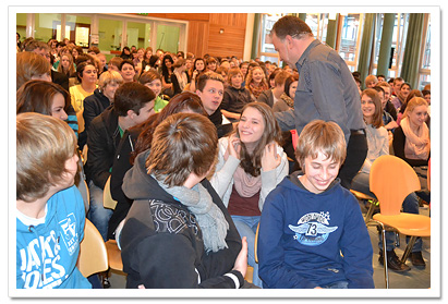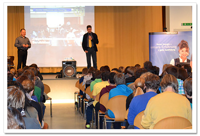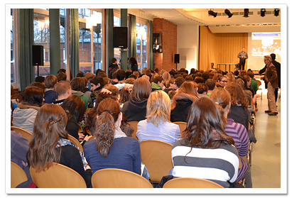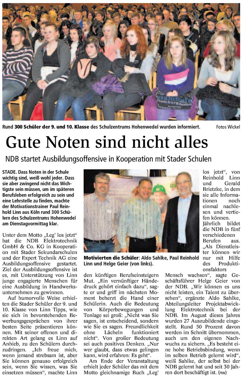 Das Fazit seines kurzweiligen Vortrags lautete: „Leg los, Jetzt!“ - Ein Appell an die Schülerinnen und Schüler, ihre berufliche Zukunft zu planen, Verantwortung zu übernehmen und sich der eigenen Fähigkeiten und Stärken bewusst zu werden. Am 13.12.2011 kamen auch die Schüler des Schulzentrums Hohenwedel in den Genuss eines Powertags (siehe unten: Stader Tageblatt vom 14.12.2011) |