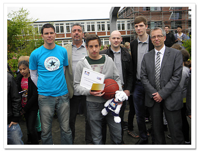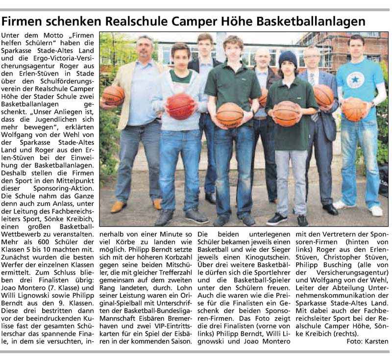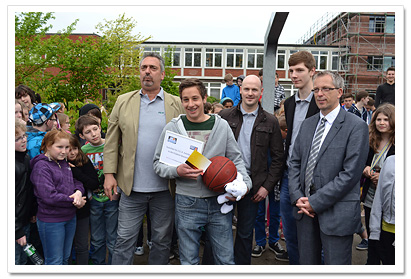Bewegungsangebot besteht jetzt durch zwei Basketballkörbe. Möglich wurde die Anschaffung durch zwei Spenden der Sparkasse Stade-Altes Land und der Ergo-Versicherung an den Schulförderverein sowie durch Gelder, die unsere Schülerinnen und Schüler beim letzten Sponsorenlauf erlaufen haben. Wir wünschen allen Schülerinnen und Schülern viel Freude beim Spielen.
