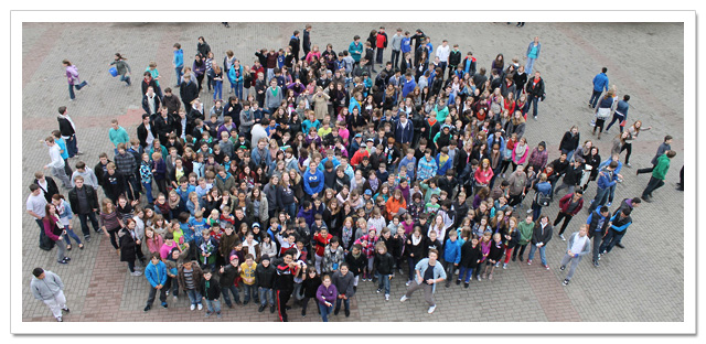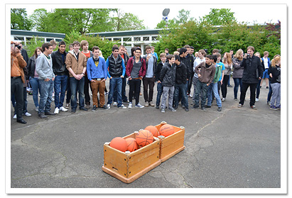sowohl im Gebäude als auch auf dem Schulhof ein, ein neues