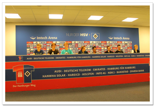 Nach dem Besuch des Museums holte uns ein HSV-Mitarbeiter ab, um uns die Räumlichkeiten der Imtech-Arena näher zu zeigen. Unter anderem die VIP-Logen, der Pressekonferenzraum, die Pressetribüne, die Gästekabine und die Trainerbänke an der Seite des Spielfeldes. Danach hielt Herr Kreibich noch eine