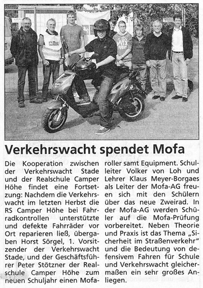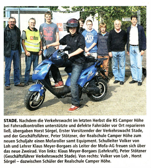 Verkehrswacht Stade unterstützt die Mofa-AG der Realschule Camper Höhe |