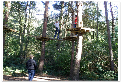 Nach dem aufregenden Besuch im Kletterwald ging die ganze Klasse gemeinsam zum Miniaturgolf. Als sie mit dem Golfen fertig waren, gingen sie in die Stadt, um in Dreier-Gruppen einkaufen zu gehen. Als die Klasse wieder in der Jugendherberge angekommen war, gab es auch schon Abendbrot. Am Abend machten sie noch eine Nachtwanderung durch den Wald zum Stausee, der in Geesthacht für Strom sorgt.