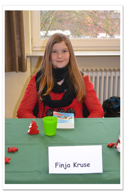 Gewonnen hat Finja Kruse! Sie wird unsere Schule beim Kreisentscheid im Februar 2013 vertreten. Herzlichen Glückwunsch, Finja! |
