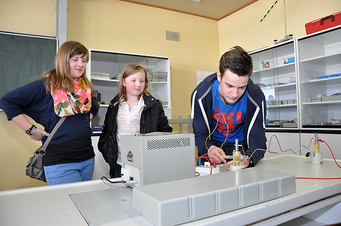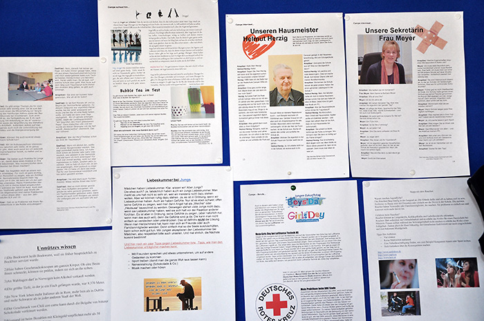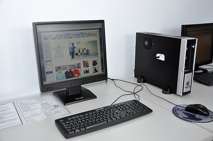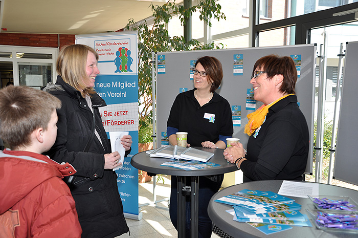 Am 6. April hieß es wieder: Tag der offenen Tür. Schülerinnen und Schüler, Lehrer und der Schulförderverein hatten alles gut vorbereitet, um den Besuchern einen umfassenden Eindruck der Realschule Camper Höhe zu vermitteln. So konnten Eltern sich den Arbeitsplatz ihrer Kinder ansehen und Grundschüler schon mal die Luft an ihrer weiterführenden Schule schnuppern. Es wurden wieder Führungen durch das Schulgebäude angeboten. Schüler stellten ihre Unterrichtsergebnisse vor. Die "Konfliktschlichter", die Arbeitsgemeinschaften und die Schülerfirmen waren mit Ständen vertreten. Der Schulverein informierte über seine Arbeit. Für das leibliche Wohl sorgte die Cafeteria. Aber vor allem, zeigte sich der neue Glanz der Schule in den bereits fertig gestellten Unterrichtsräumen. Und so blicken Schulleitung, Kollegium, Eltern und Schüler hoffnungsvoll in die Zukunft. |
