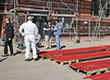 streichwütige Malertruppe zum Streichen der Bretter für die