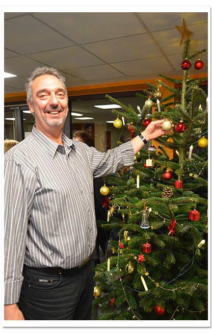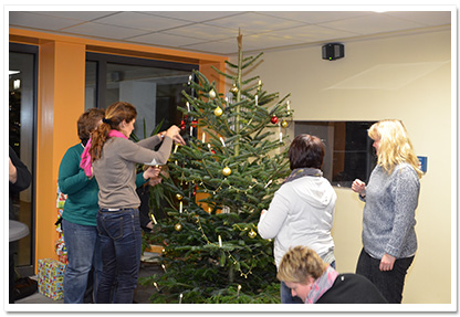 einige Kollegiumsmitglieder die Tanne festlich geschmückt.