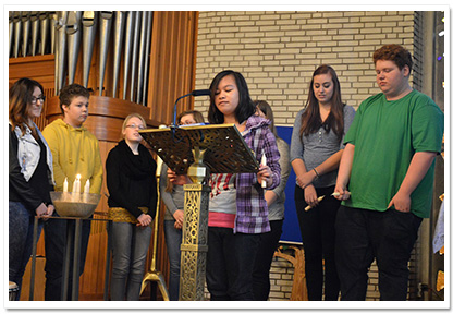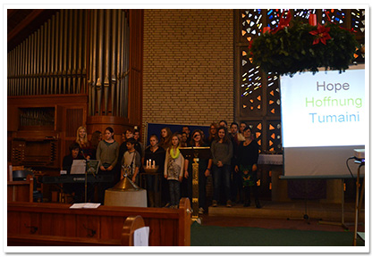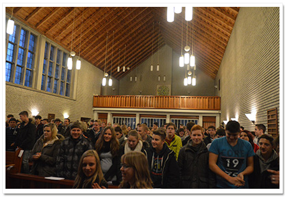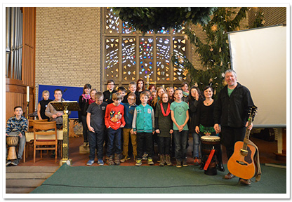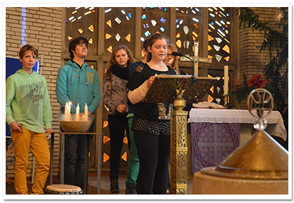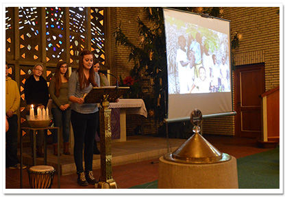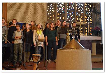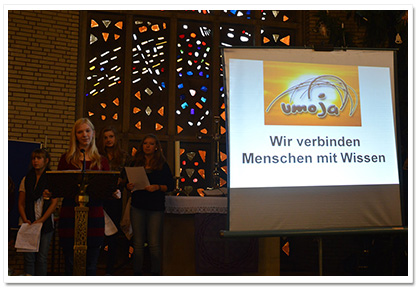 Der ökumenische Gottesdienst zum Advent der Realschule Camper Höhe fand wie die Jahre zuvor wieder in der Johannes-Kirche (Stade) statt. Er hatte dieses Jahr (2013) das Thema „Hoffnung für uns und Sansibar“. Das Gottesdienst Orga-Team bestand aus Frau Tiemann, Frau Müller-Trudgett, und Frau Soppart und wurde wieder unterstützt von der Pastorin Frau Meinhardt. Es haben sich viele Schüler und deren Lehrer hauptsächlich aus Religions- sowie Werte und Normen- Kursen sich Wochen zuvor vorbereitet und aktiv den Gottesdienst gestaltet (wie u.a. Fürbitten, Hoffnungsaktion mit Kärtchen an der alle Anwesenden teilnahmen, Vortrag zum Umoja Bildungsprojekt, Hoffnungsstempel am Ausgang). Ebenfalls gab es verschiedene musikalische Beiträge wie z.B. das Lied „Mungo Akipenda“, vorgetragen von der Kooperationsklasse 6a, oder auch das Segenslied „Feel the blessing“ mit Schülern verschiedener Jahrgangsstufen. Musikalisch unterstützt von unserer kleinen Gottesdienstband. Schüler aus dem Jg. 10 haben sich in den Wochen zuvor intensiv mit dem Kollektenthema befasst und Stellwände für den Eingangsbereich in der Schule gestaltet. |