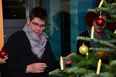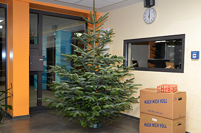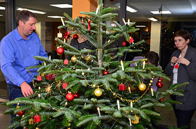 von der Gärtnerei Seufert gestiftete Tanne geschmückt.