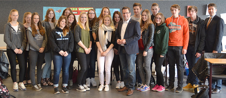 Kai Seefried, Abgeordneter des Niedersächsischen Landtags und dort bildungspolitischer Sprecher seiner Fraktion, besuchte am 19.05.2015 die Realschule Camper Höhe. Neben Gesprächen mit den Lehrkräften und der Schulleitung fand ein Besuch der 10 D statt. Hier ging es um die Frage, warum Jugendliche heute überhaupt noch wählen gehen sollen und warum es sich lohnt, vor Ort Verantwortung zu übernehmen. Kai Seefried verdeutlichte den Schülerinnen und Schülern