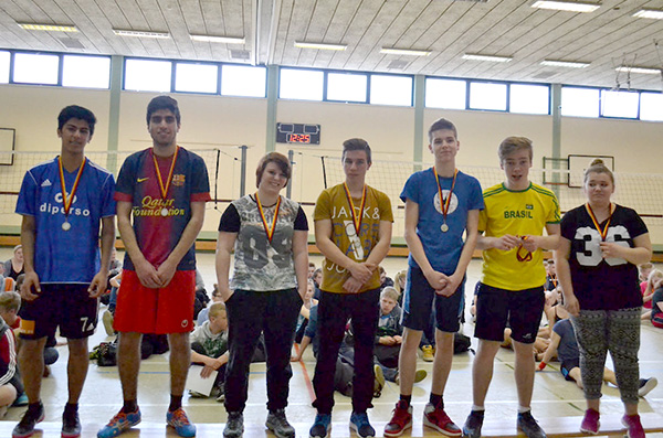 Ende April fand unter Leitung von Herr Kreibich ein schulformübergreifendes Volleyballturnier der 9. und 10. Klassen zwischen unserer Schule und der Hauptschule Thuner Straße statt. Die ersten drei Plätze durften sich über Gold, Silber und Bronzemedaillen freuen. Nach spannenden Wettkämpfen ging der erste und zweite Platz an die 10c der Realschule Camper Höhe. Dennoch lieferte die Hauptschule eine tolle Leistung ab und brachte so manches Team unserer Schule mächtig ins Schwitzen.