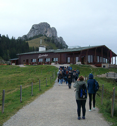 Am Abend des 13.September 2015 machten sich die Klassen 10b und 10d mit Frau Puppatz, Frau Springhorn, Frau Radny und Herrn Kreibich auf den Weg nach Bayern in ein kleines Örtchen namens Aschau. Nach ca. 12 Stunden Busfahrt sind wir dort angekommen und die Zimmerschlüssel wurden ausgeteilt. Wir hatten eine halbe Stunde Zeit, uns für die Tour auf die Kampenwand fertig zu machen. Es fuhren immer vier Leute mit einer Seilbahn den Berg hinauf. Als alle oben waren, durften wir noch kurz ein paar Bilder machen. Anschließend wanderten wir den Berg hinunter. Leider regnete es bei unserem Abstieg wie aus Eimern. Auf der Mitte des Weges fanden wir dann ein kleines Lokal, in dem wir Essen und Trinken kaufen konnten. Nach 2 Stunden befanden wir uns wieder im Hotel und hatten die Möglichkeit zu duschen oder in die Stadt zu gehen, um Proviant einzukaufen. Am Abend trafen wir uns dann noch mit den Lehrern, um den Tag zu besprechen und um über die nächsten Tage zu reden.