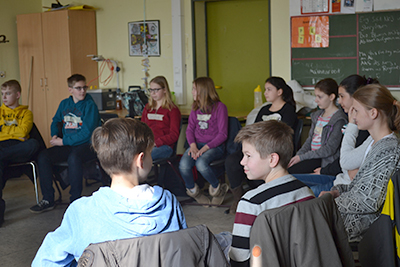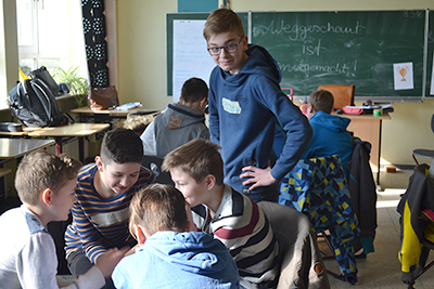 Ausgrenzung in unserer Klasse? Das wollen wir nicht! Genau aus diesem Grund haben wir uns entschieden, einen kleinen Workshop zum Thema „Mobbing“ zu machen. Unsere sehr engagierte Elternvertreterin hat Karl-Heinz Langner angeschrieben. Er ist der Leiter der Außenstelle Weisser Ring e.V. des Landkreises Harburg. Und hat sich in Absprache mit Frau Kother und Herrn von Loh bereit erklärt, uns besuchen zu kommen. Am letzten Mittwoch, d. 09.März 2016 war es dann so weit. Gemeinsam mit seiner Kollegin Katrin Ragge machten wir einige Übungen, um selbst einmal zu erfahren, wie es sich anfühlt, ausgegrenzt zu werden. „Ein ganz schön schreckliches Gefühl“ ist das, bestätigte Delisa Dzudzevic. In den 90 Minuten durften wir einen kleinen Teil des Gewaltpräventionsprogrammes „Wir sind stark“ ausprobieren. Dieses findet normalerweise an einem außerschulischen Ort an mehreren Tagen statt und wird von einem Team aus Polizei und Sozialarbeit durchgeführt. Wir haben uns sehr über diesen Besuch gefreut und konnten einiges dazulernen.