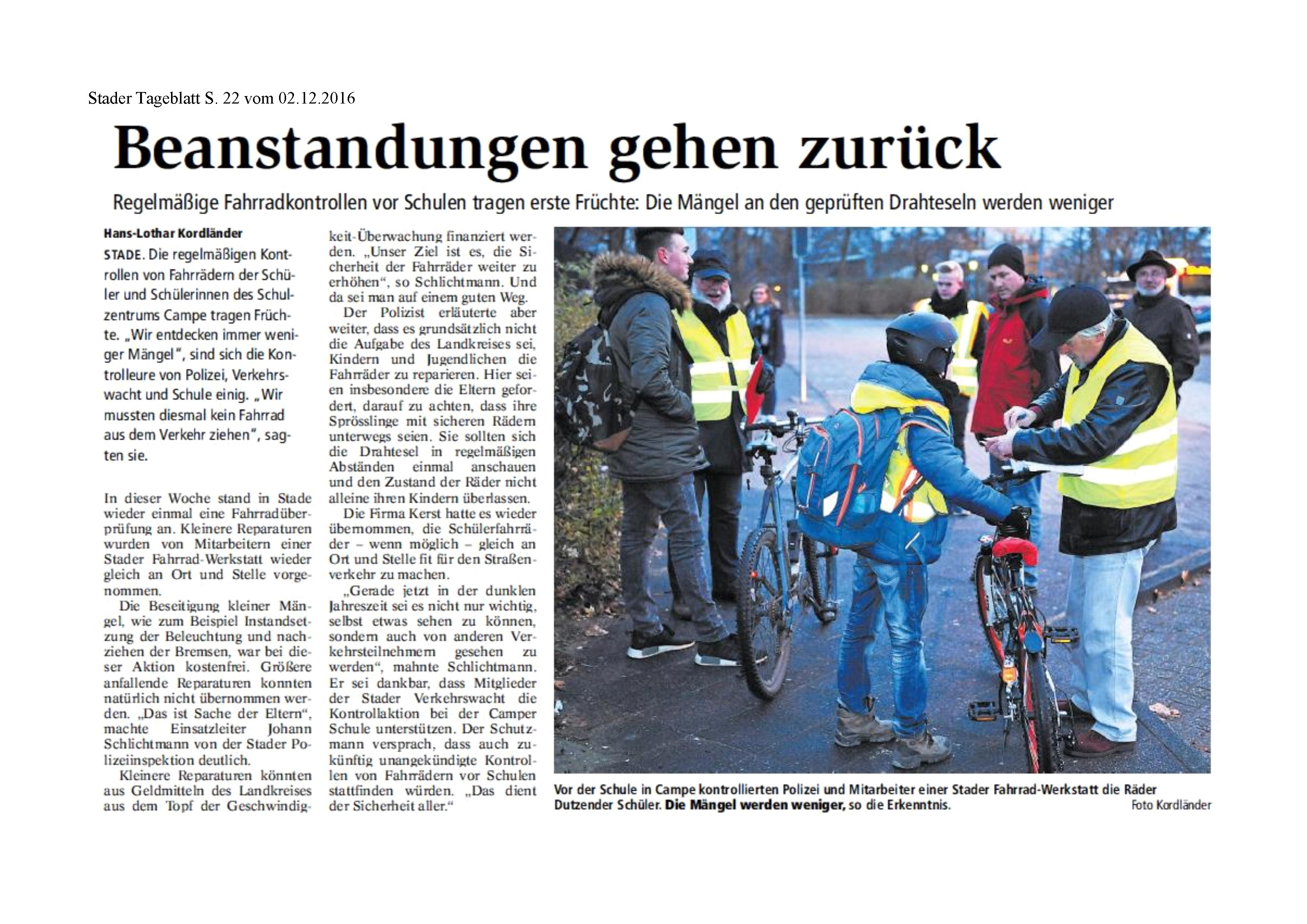 Fahrradkontrolle an der RS Camper Höhe