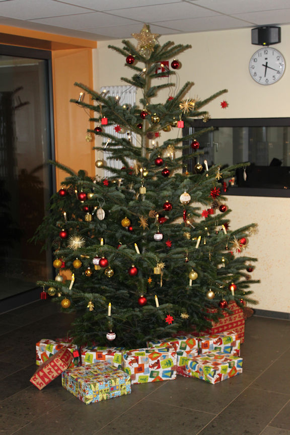 Auch dieses Jahr wurde an unserer Schule, am Haupteingang ein Tannenbaum geschmückt.