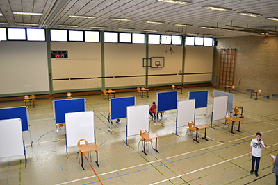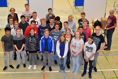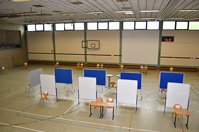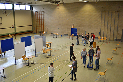 Die Vorbereitungen laufen auf Hochtouren. Die Schülerfirma Event beim Aufbau der Stände für die Jobmesse.