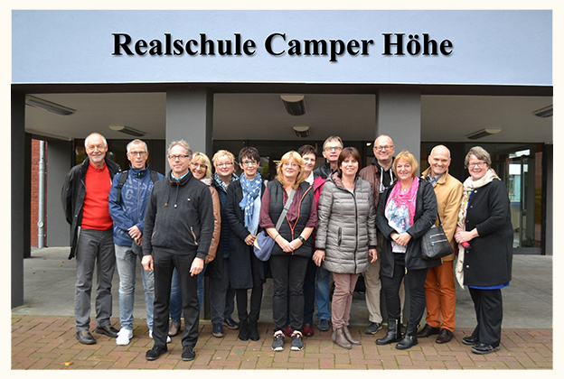 Die Klasse 10 E aus dem Abschlussjahr 1977 traf sich am 21.10.2017 zu ihrem 40jährigen Jubiläum. Start des Wiedersehens war an der Realschule Camper Höhe, wo während einer Führung alte Erinnerungen wach und ausgetauscht wurden. Begleitet wurde die Klasse von ihrem ehemaligen Lehrer Herrn Mennecke. |