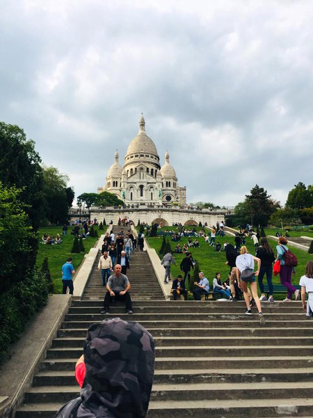 Nach einer mehrstündigen Zugfahrt kam die Gruppe schließlich mit dem TGV am Pariser Gare de l’Est an und konnte schon kurze Zeit später ihre Zimmer in einem Hostel nahe des Gare du Nord beziehen. Beim gemeinsamen Abendessen hatten die Schülerinnen und Schüler erstmals die Gelegenheit, ihr Französisch anzuwenden und bewunderten beim abendlichen Spaziergang die berühmte und in strahlendem Weiß leuchtende Basilique du Sacré-Coeur.