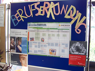 Schüler planen ihre Zukunft Die Jungen und Mädchen der Realschule Camper Höhe nehmen ihre Zukunft selber in die Hand. Auf einer eigens dafür angefertigten Stellwand informieren sie sich über die unterschiedlichen Möglichkeiten.