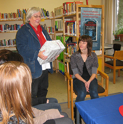 Bücher der Autorin gewonnen, die jetzt in der Schülerbücherei stehen. |