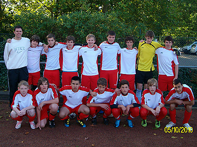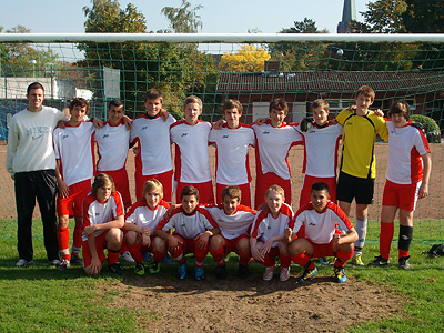 Jeder wusste, wenn Merlin den jetzt hält, haben wir hier gewonnen. Der Spieler läuft an ... schießt, Merlin reißt die Arme hoch und fälscht den Ball an die Latte. Der Jubel kannte jetzt keine Grenze. Man muss sagen, dass wir an diesem Tag vieles unserem Torwart zu verdanken haben. Aber manchmal muss man das Glück auch erzwingen und das wurde getan. Nun darf die Truppe nach den Osterferien am Kreisgruppenentscheid teilnehmen. Dort will man natürlich wieder für Furore sorgen. Zur Erfolgsmannschaft gehören: Merlin Koppelmann, Leonard Lohmann, Daniel Geiger, Kevin Spreckels, Mark Poppe, Cem Yilmaz, Timo von Holt, Malte Rohmann, Süleyman Yaman, Philipp Berndt, Mario Trabandt, Fabian Lünser, Dennis Geiger, Lucas Beutler und Marvin Kriegelsteiner. |