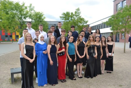 Nach Auftritten des Chors, einer Klavierspielerin aus der 6. Klasse, der Elternvertreterin und der stellvertretenden Bürgermeisterin (Melanie Rost Reinecke) und des Schulleiters (Herr von Loh), kam der große Moment: Die Zeugnisse wurden ausgegeben. Beginnend mit der 10a von Herrn Wesch, dann der 10b von Frau Grauert-Baitz, der 10c von Frau Grundmann, der 10d von Herrn Hanke und zum Abschluss der 10e von Frau Gehnen.
