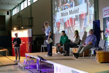 Am 09.10.2023 war der 9. Jahrgang der RS Camper Höhe zu einer besonderen Berufsorientierungsveranstaltung in die Sporthalle der Schule eingeladen.