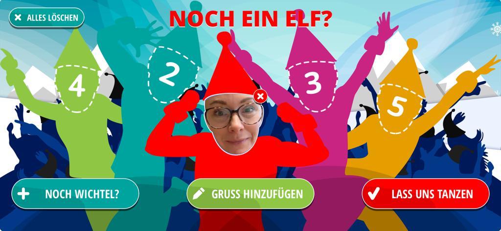 Du kannst fünf Fotos von dir in Elfengesichter hochladen, die passende Weihnachtsmusik auswählen und dann die Elfen tanzen lassen.