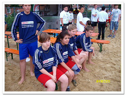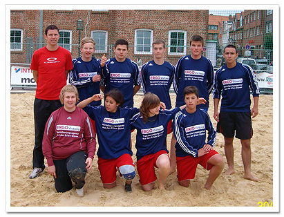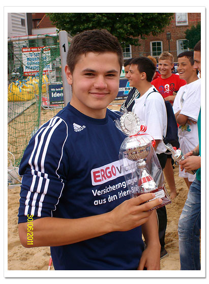 Wenn die Schule “beacht” . . . . .Stade 21 hat in der Woche vom 27. Juni bis 2. Juli 2011 mit den Stader Sportvereinen die erste Stader Beachwoche am Sande organisiert. Auch die RS Campe hat an diesem Sportevent teilgenommen. Am Morgen des 30. Juni 2011 nahmen die Schulen der Umgebung am Beachsoccer-Turnier teil. Insgesamt gab es fünf Mannschaften, die sich von 9 Uhr morgens bis zum Mittag ein Duell im Sand lieferten. Am Ende des Turniers hatten alle fünf Mannschaften denselben Punktestand, deshalb wurde der Sieger durch den direkten Vergleich der Torverhältnisse bestimmt. Trotz zwei Niederlagen und der einen oder anderen Verletzung stellte sich heraus, dass die Mannschaft der RS Campe unter der Leitung von Herrn Kreibich den Sieg davongetragen hat. Als Erinnerung an diesen sportlichen Morgen bekamen die Mannschaften auf dem Treppchen einen kleinen Pokal überreicht. Als krönenden Abschluss hielt ein unterhaltungslustiger Fußballer eine kleine Abschlussrede im Namen der meisten Teilnehmer und nutzte sogleich die Chance, um eine kleine Beatbox -Showeinlage hinzulegen.