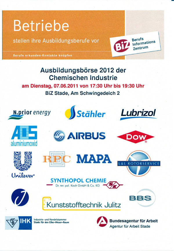 Am Dienstag, den 7. Juni veranstaltet das BIZ eine Ausbildungsbörse der Chemischen Industrie von 17:30 bis 19:30 Uhr