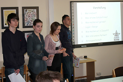 für den Vertrieb von Schulkleidung nichts im Wege steht. SchülerInnen des Wahlpflichtkurses Arbeit & Wirtschaft der neunten Klassen präsentierten den Anwesenden den aktuellen Stand ihrer Arbeit und ihre Pläne für die Gründung der Schülerfirma „Clothes 4 Campe“.
