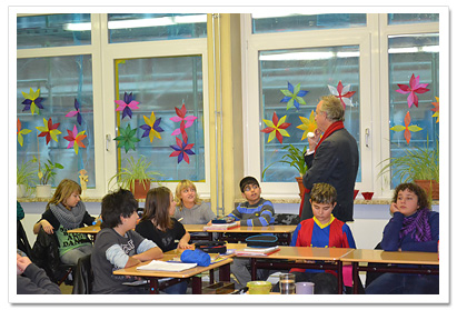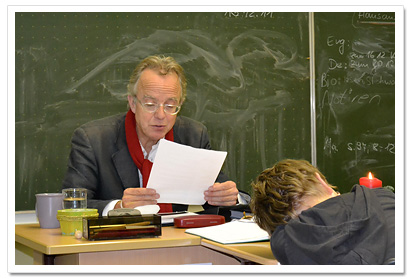 einer vorweihnachtlichen Lesung in die Klassen 5c und 5d. Die Lesung war sehr kurzweilig und interessant, was nicht zuletzt an der Auswahl seiner Geschichten und seiner offenen und freundlichen Art lag, mit der er auf die SchülerInnen einging. Für die SchülerInnen war es sehr spannend, einen leibhaftigen Schauspieler so hautnah zu erleben, der zudem auch noch Tipps gab, wie man längere Texte sicher auswendig lernen kann. Mit dieser Veranstaltung ist es uns gelungen, etwas Ruhe in den vorweihnachtlichen Trubel in der Schule zu bringen und die Wartezeit bis zum Beginn der Weihnachtsferien angenehm zu verkürzen! Barbara Schwerdtner und Silke Tiemann |