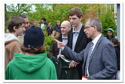 sowohl im Gebäude als auch auf dem Schulhof ein, ein neues