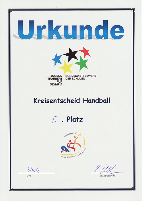 des Vincent-Lübeck-Gymnasiums in Stade statt. Leider war die Mannschaft schon vor Turnierbeginn dezimiert worden. Durch Verletzungen und die Berufsorientierung des 8. Jahrgangs konnte man nur mit sechs Feldspielerinnen und zwei Torhüterinnen antreten. Schon das erste Spiel gegen den späteren Turniersieger, das Gymnasium Buxtehude Süd, kostete viel Kraft. Bis zur Halbzeit konnten die Camper-Mädels das Spiel mit 4 : 6 noch spannend gestalten. In der zweiten Halbzeit kam dann der erste Einbruch und die Niederlage mit 5 : 17 konnte nicht mehr vermieden werden. Im zweiten Spiel erkämpften sich unsere Handballerinnen ein Unentschieden gegen die klar favorisierten Mädchen aus der Halepaghen-Schule-Buxtehude. Dabei hatte Celine Ahrend nach einem sehr starken Spiel auch noch den letzten Wurf in der letzten Sekunde gegen den Innenpfosten geworfen. |