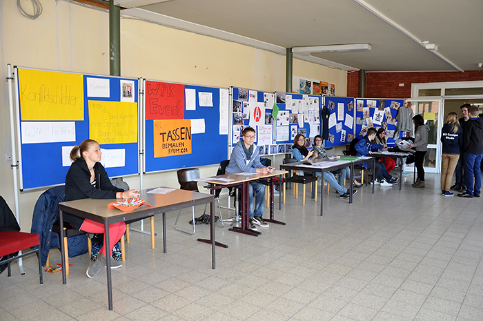 Am 6. April hieß es wieder: Tag der offenen Tür. Schülerinnen und Schüler, Lehrer und der Schulförderverein hatten alles gut vorbereitet, um den Besuchern einen umfassenden Eindruck der Realschule Camper Höhe zu vermitteln. So konnten Eltern sich den Arbeitsplatz ihrer Kinder ansehen und Grundschüler schon mal die Luft an ihrer weiterführenden Schule schnuppern. Es wurden wieder Führungen durch das Schulgebäude angeboten. Schüler stellten ihre Unterrichtsergebnisse vor. Die "Konfliktschlichter", die Arbeitsgemeinschaften und die Schülerfirmen waren mit Ständen vertreten. Der Schulverein informierte über seine Arbeit. Für das leibliche Wohl sorgte die Cafeteria. Aber vor allem, zeigte sich der neue Glanz der Schule in den bereits fertig gestellten Unterrichtsräumen. Und so blicken Schulleitung, Kollegium, Eltern und Schüler hoffnungsvoll in die Zukunft. |