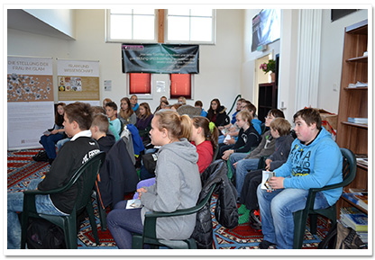 | Die Religionskurse Jahrgang 7 und Jahrgang 8 von Frau Müller-Trudgett beim Besuch der Bait-Ul-Karim Moschee | ||