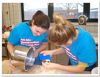 Die Klasse wurde aufgeteilt, so dass wir in kleineren Gruppen unterschiedliche handwerkliche Tätigkeiten ausprobieren konnten. So versuchten wir uns unter anderem als Friseure, Zimmerleute, Bäcker, Maler und Metallbauer. Insgesamt konnten wir viele neue Erfahrungen sammeln.