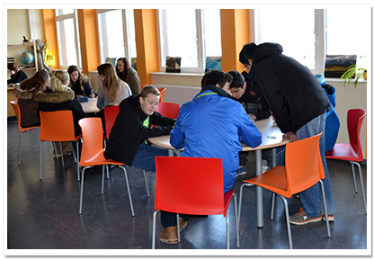 Die Bücherei befindet sich im 2. Stock des A-Traktes und wird jeden Tag in den großen Pausen von unserer neuen Bibliothekarin Frau Meincke betreut. In dem großen, hellen Raum befinden sich jeweils zwei große Konferenztische, die vom Schulförderverein gesponsert wurden, eine gemütliche Ecke zum Lesen und viele neue Bücher. Außerdem verfügt unsere Bücherei auch über ein Antiquariat. Das heißt, dass sie auch auf alte und gebrauchte Bücher spezialisiert ist. Anschaffungswünsche können jederzeit bei Frau Meincke geäußert werden.