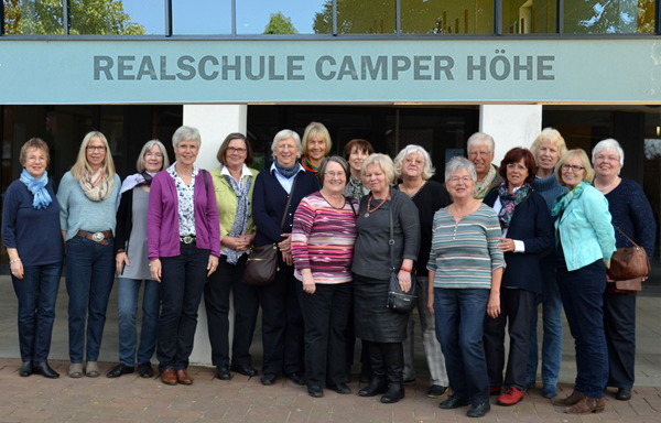 alte Schule. Nach einem kurzen Bericht über die aktuelle Lage an der Realschule gab es bei der anschließenden Führung durch die Schule viele Veränderungen zu entdecken. Auf dem Foto sind nur Damen zu sehen: Vor 50 Jahren waren sie in einer reinen Mädchenklasse!