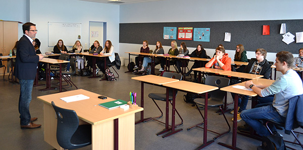 Kai Seefried, Abgeordneter des Niedersächsischen Landtags und dort bildungspolitischer Sprecher seiner Fraktion, besuchte am 19.05.2015 die Realschule Camper Höhe. Neben Gesprächen mit den Lehrkräften und der Schulleitung fand ein Besuch der 10 D statt. Hier ging es um die Frage, warum Jugendliche heute überhaupt noch wählen gehen sollen und warum es sich lohnt, vor Ort Verantwortung zu übernehmen. Kai Seefried verdeutlichte den Schülerinnen und Schülern