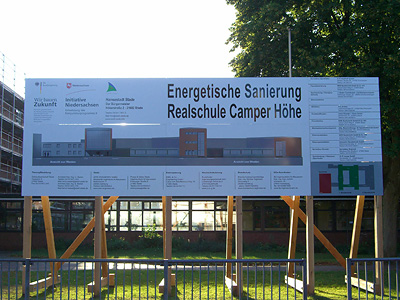 Da auch am Atheneum gearbeitet wird, werden zusätzliche Schülerinnen und Schüler auf dem Gelände der Realschule Camper Höhe beschult –Container für vier zusätzliche Klassenräume wurden auf dem Schulhof aufgestellt