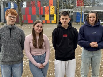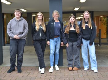 Auf dem Bild: (v.l.n.r.) Johannes Mögling, Vanessa Offermann, Frau Hinrichs, Lina Stöter, Lina Voß