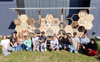 2023 machten sich die SchülerInnen in der Projektwoche daran, imposante Insektenhotels zu bauen. Jetzt konnten sie aufgestellt werden.